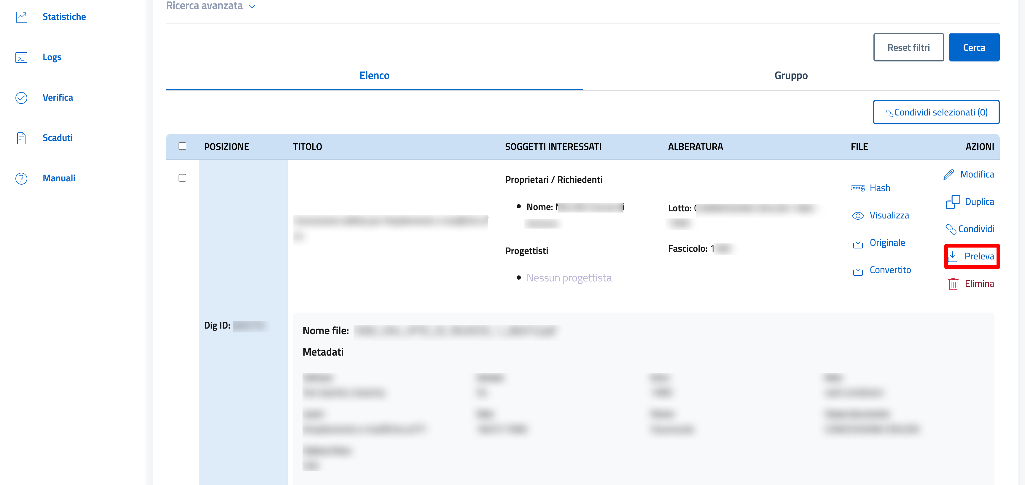 Una volta eseguita l’operazione, il documento sarà visibile nella sezione Prelevati.